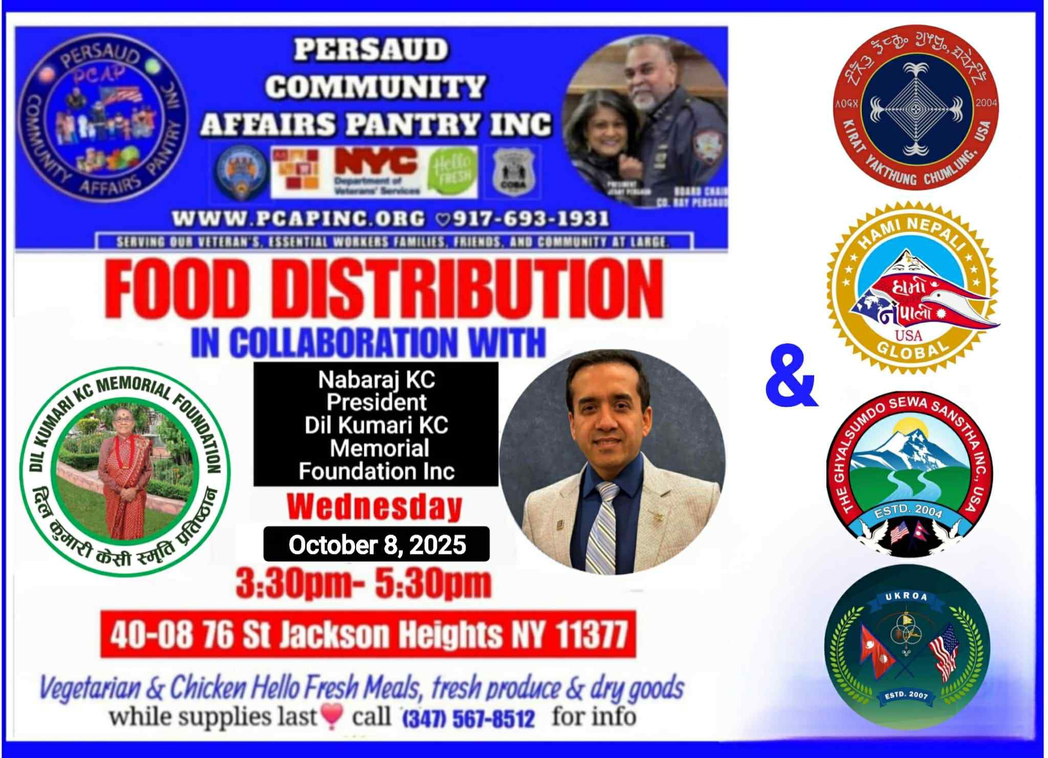 यो कार्यक्रम पर्साउड कम्युनिटी अफेयर्स प्यान्ट्री इन्कको आयोजनामा र दिल कुमारी केसी स्मृति प्रतिष्ठानका अध्यक्ष नवराज केसीको सहकार्यमा सम्पन्न भएको हो। कार्यक्रममा हामी नेपाली ग्लोबल अमेरिका च्याप्टर, घ्याल्सुम्दो सेवा संस्था अमेरिका, किरात याक्थुङ चुम्लुङ अमेरिका, र युनाइटेड किरात राई अर्गनाइजेशन अफ अमेरिका (यूकेआरओए, न्यूयोर्क च्याप्टर) लगायतका संस्थाहरूको सक्रिय सहभागिता रहेको थियो।