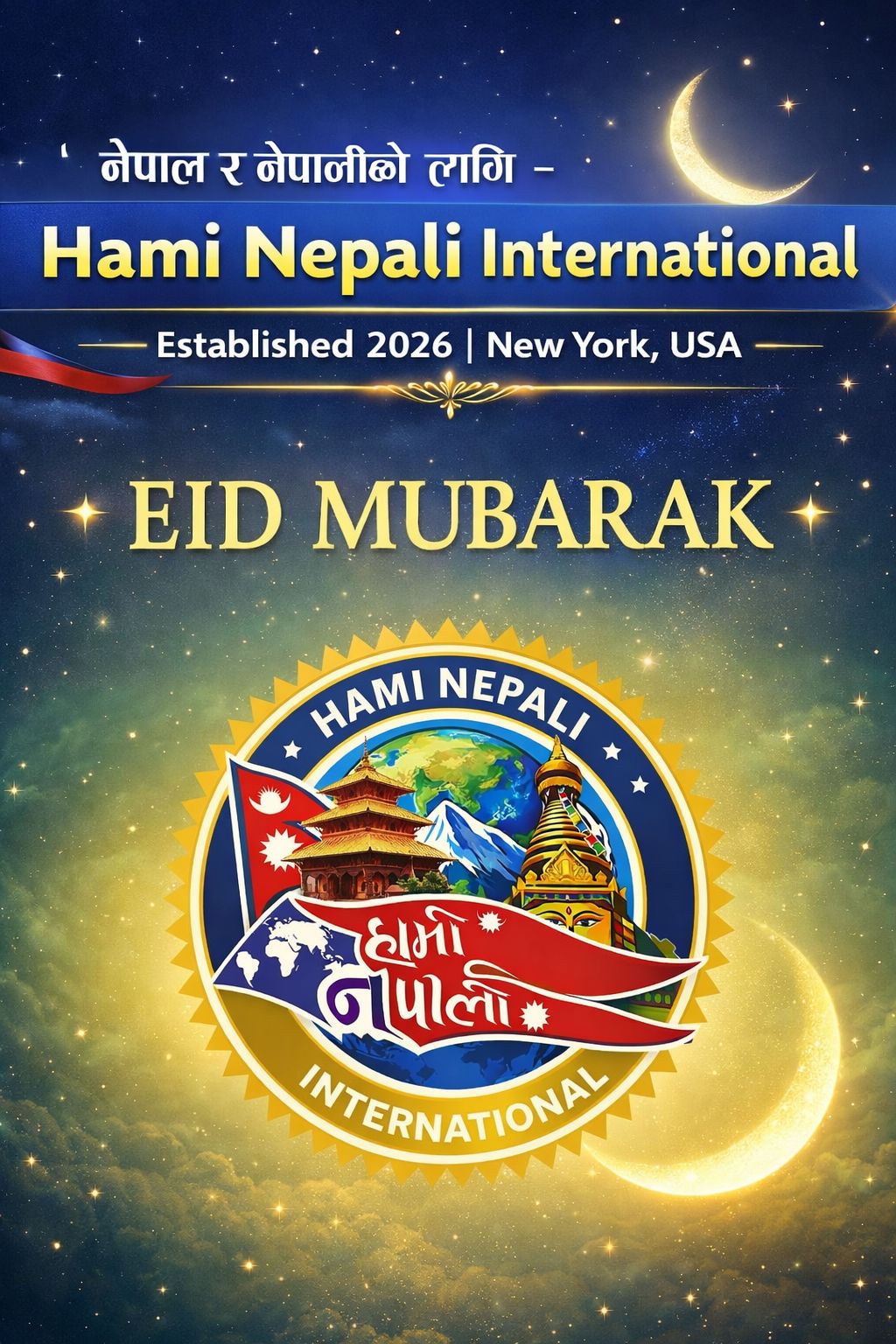 न्युयोर्क- अमेरिकाको न्युयोर्कमा स्थापना भएको संस्था ‘हामी नेपाली इन्टरनेसनल’ ले मुस्लिम समुदायको महान् पर्व इदको अवसरमा शुभकामना व्यक्त गरेको छ। सन् २०२६ मा स्थापना भएको यस संस्थाले ‘नेपाल र नेपालीको लागि’ भन्ने मूल नाराका साथ आफ्नो सन्देश प्रवाह गरेको हो।